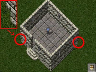 … Aus Fehlern lernt man bekanntlich am besten, daher fang ich einmal mit einem recht ´netten´ Fehler an. Treppenquarder als Sockel zu benutzen sieht nur gut aus, wenn die Wandart die man benutzt auch ein Feld breit ist, zb stonewall3. Warum dem so ist zeigt das folgende Bildchen.